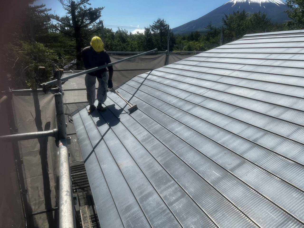 鳴沢村がサビが発生し始めたガルバリウム鋼板のケレン作業とさび止めを塗装しました