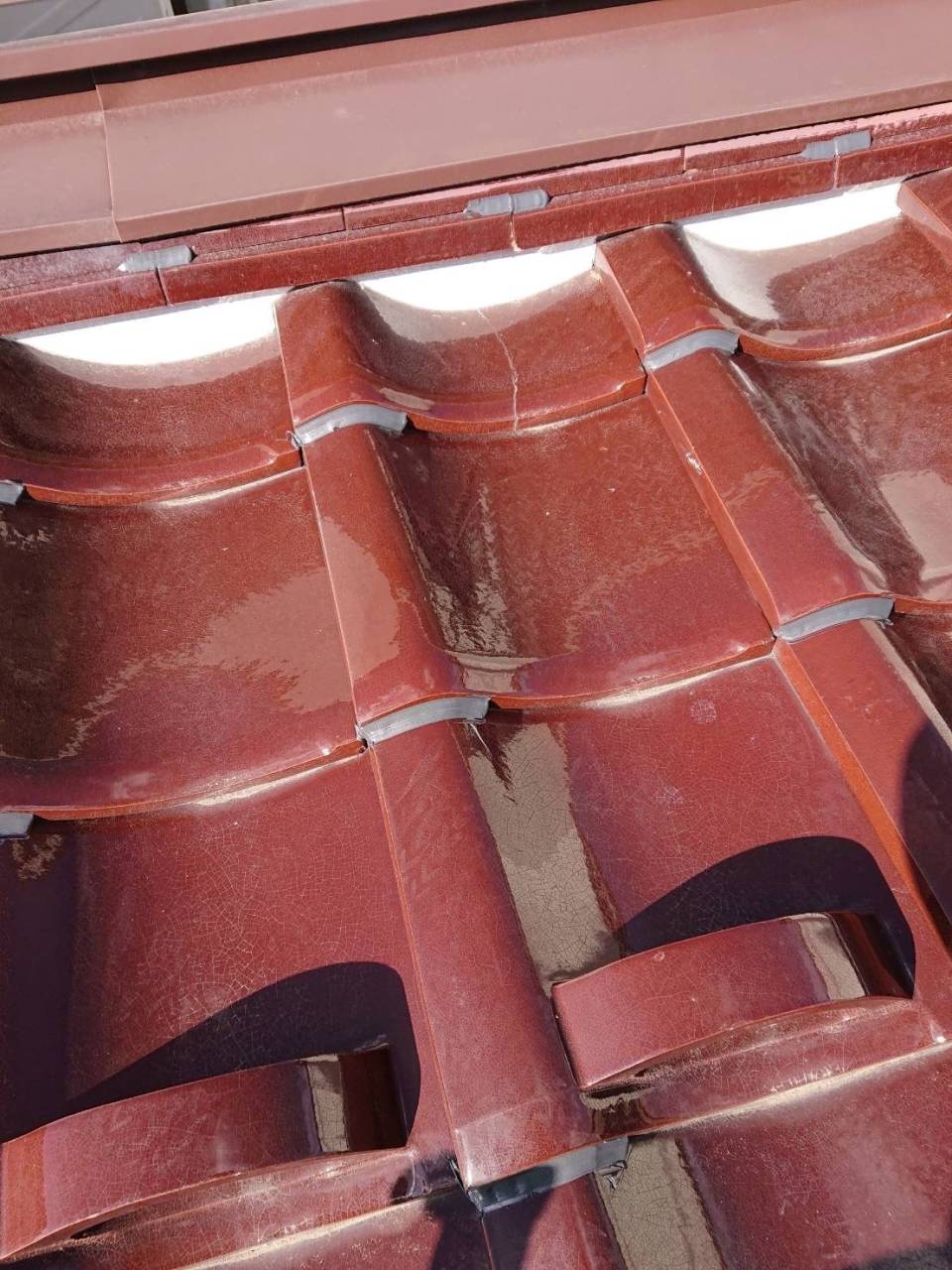 中央市で日本瓦の落下防止対策として瓦をラバーロックしました 2025/05/16 ラバーロックとは? 瓦を低予算で落下防止対策が可能です 日本瓦の屋根の場合、瓦の飛散や落下が問題視されています。ラバーロック工法では、瓦同士を専用をコーキング剤で接着します。 瓦止め太郎などの製品が有名ですが、お写真のように見た目を損なうことなく地震対策にもなるので安心ですね。 お写真のように、漆喰(しっくい)はきちんと詰め直しております。真っ白な様子がお分かりかと思います。 それに加えてラバーロックの固定力が増すので間違いのない施工です。 どうせなら、落下の心配なく漆喰・ラバーロックで長持ちさせて雨漏りは元より、瓦の落下も防ぎたいですね! 屋根工事